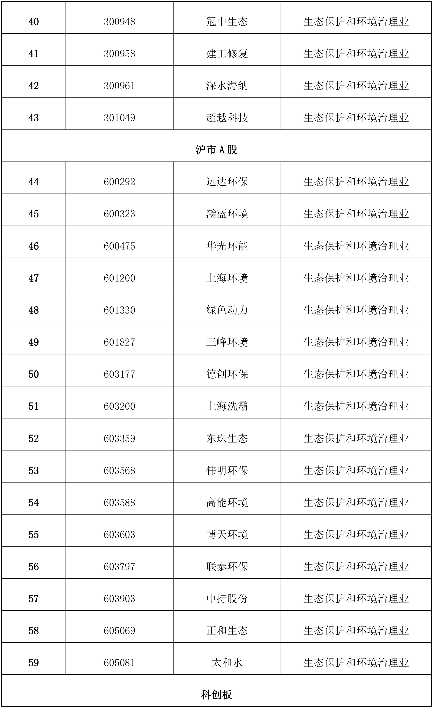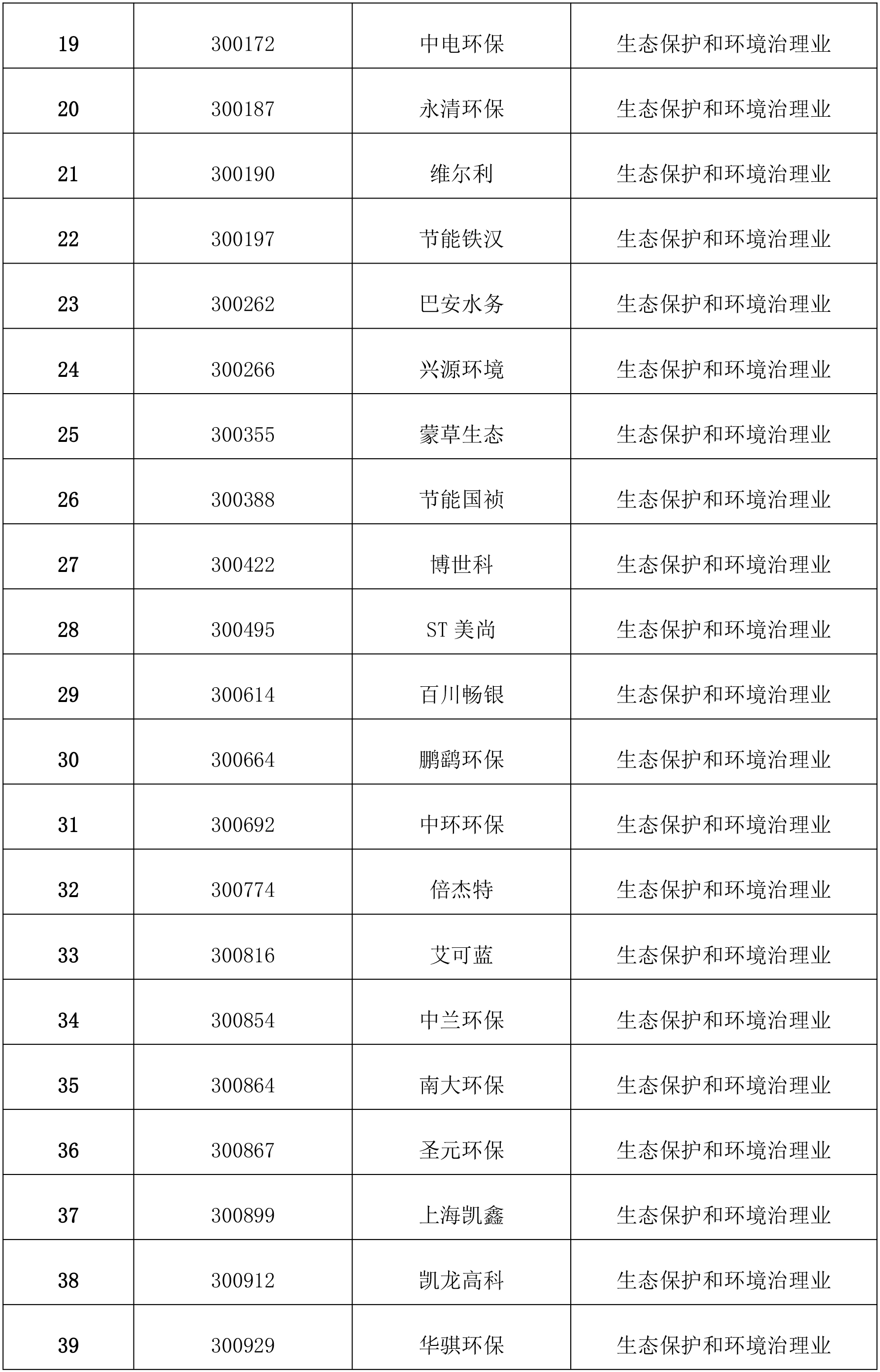 根據(jù)中國(guó)證券監(jiān)督管理委員會(huì)官網(wǎng)公布的最近一期上市公司行業(yè)結(jié)果分類,作為生態(tài)保護(hù)和環(huán)境治理類的企業(yè)如下: