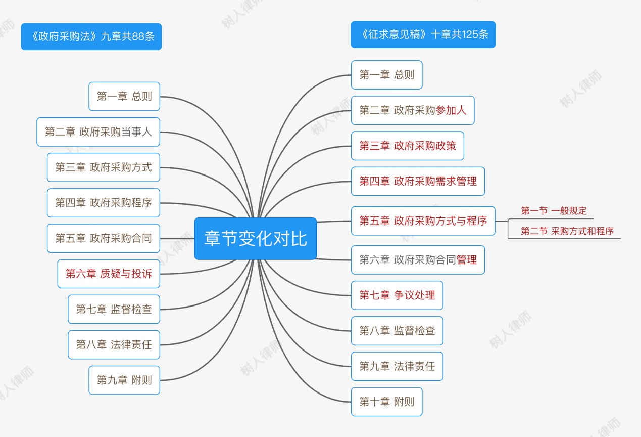 《征求意見稿》較之《政府采購法》,全新增加“政府采購政策”“政府采購需求管理”“爭議處理”章節(jié),合并《政府采購法》第三、四章內(nèi)容,刪除“第六章質(zhì)疑與投訴”,將其內(nèi)容吸納至“第七章爭議處理”中,法律結(jié)構(gòu)方面的變化使政府采購法律制度設(shè)計更加科學(xué)、合理,更加適應(yīng)時代需求,有利于政府采購統(tǒng)一大市場的建設(shè)。