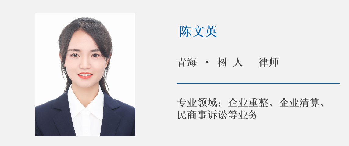 陳文英律師是青海樹人律師事務所破產(chǎn)及并購重組業(yè)務律師,南京審計大學法學學士、管理學學士。先后參與了青海鹽湖海虹化工破產(chǎn)清算、青海鹽湖硝酸鹽業(yè)破產(chǎn)清算、哈木鐵路破產(chǎn)清算、格爾木楚云商貿(mào)“執(zhí)轉(zhuǎn)破”等項目。