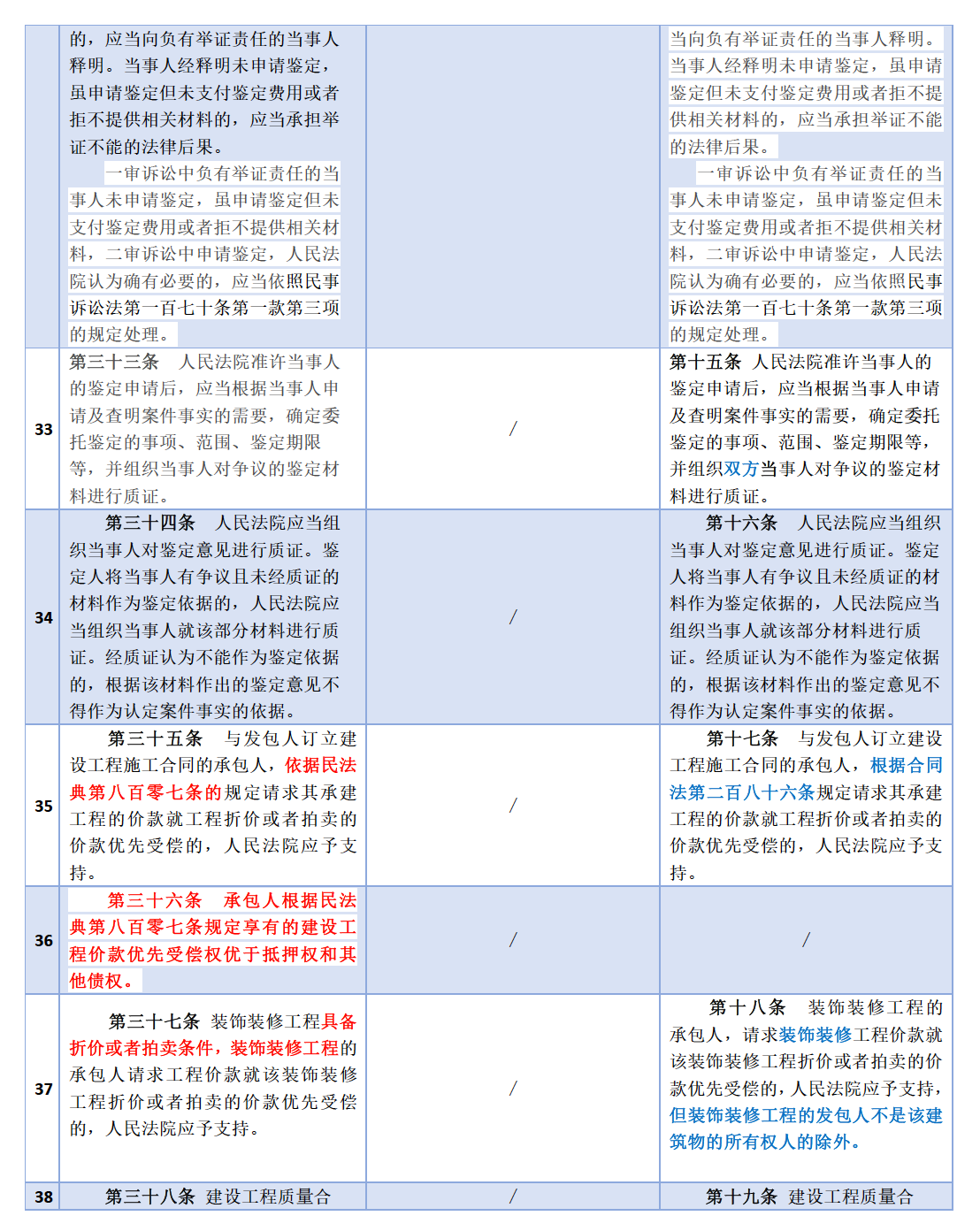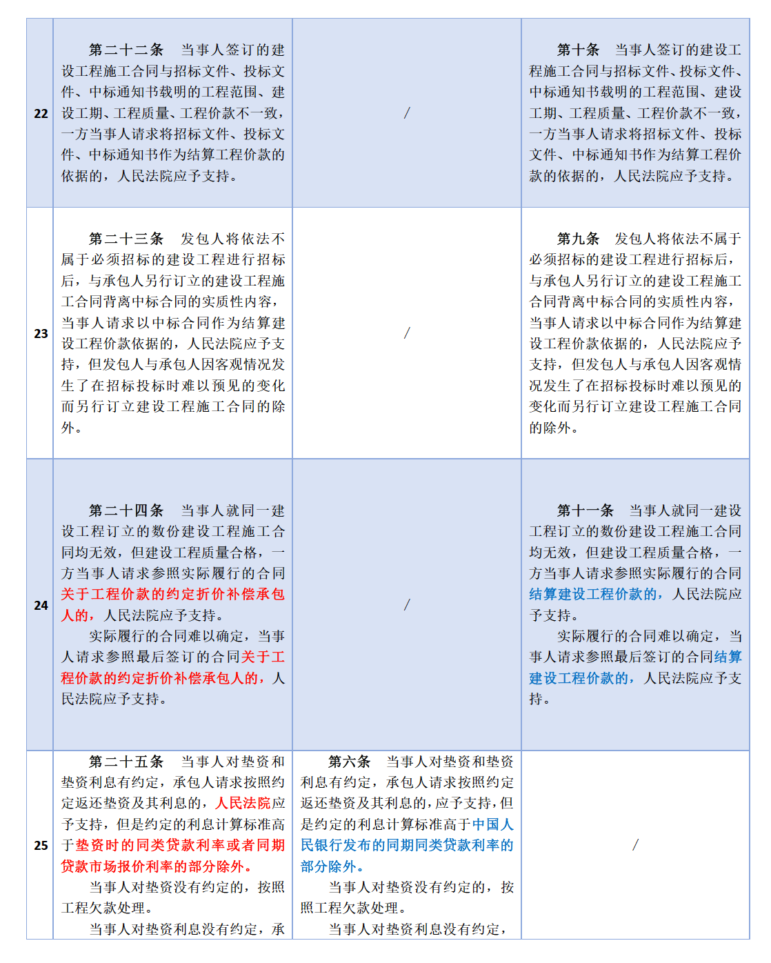 新解釋(一)與原解釋(一)(二)對(duì)照表