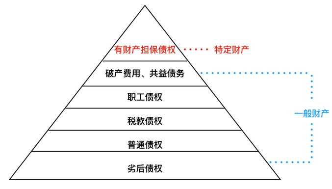注:本文圖中關(guān)于債權(quán)清償?shù)捻樞虿⒉槐厝皇瞧飘a(chǎn)程序中的絕對(duì)順位,具體債權(quán)順位需要管理人結(jié)合債權(quán)人申報(bào)材料,依法予以審查確認(rèn)。