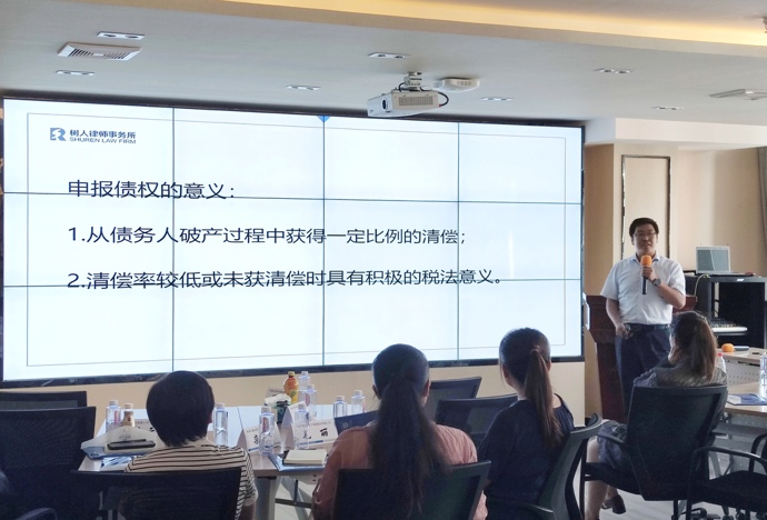 樹人律師事務所合伙人、并購部負責人馬青虎律師與并購部主辦律師李曉璐以《從破產(chǎn)視角看企業(yè)應收賬款管理》為主題,分別介紹了企業(yè)破產(chǎn)與破產(chǎn)企業(yè)稅收問題、企業(yè)應收賬款管理問題及方法,指導企業(yè)在面對破產(chǎn)情況下,規(guī)范處理稅收與債權債務問題。
