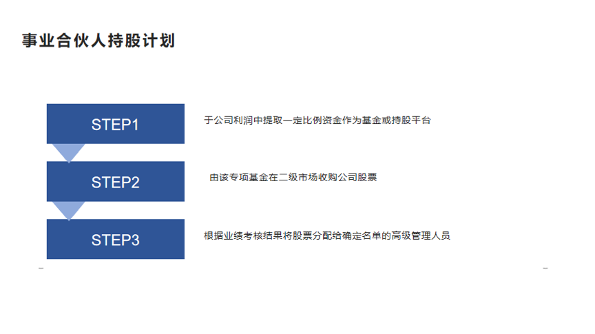 核心管理人員是美的集團(tuán)賴以生存的根基,作為真正的公司高層,這些管理人員無(wú)不掌握著美的大量資金、技術(shù)以及人脈資源,任何核心管理人員的離職都是對(duì)美的集團(tuán)的沉重打擊。當(dāng)前經(jīng)濟(jì)形式下,企業(yè)高層“裸辭”盛行,為了防止上述情況出現(xiàn),美的集團(tuán)推出了事業(yè)合伙人持股計(jì)劃,采用業(yè)績(jī)股票作為激勵(lì)內(nèi)容,針對(duì)公司總裁及總經(jīng)理級(jí)別的核心管理人員,從公司利潤(rùn)中提取出一定比例作為專項(xiàng)基金在二級(jí)交易市場(chǎng)上購(gòu)買公司的股票,而后根據(jù)業(yè)績(jī)的考核結(jié)果分配給高管。這樣一來(lái),公司高管真正從高級(jí)“打工仔”變成了公司事業(yè)的合伙人,保證了高管粘性,為企業(yè)提供了極大向心力。
