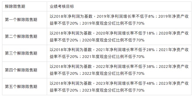 公司設定解除限售期各年度凈資產收益率均不低于20%,有效反映了公司經營的收益成果;