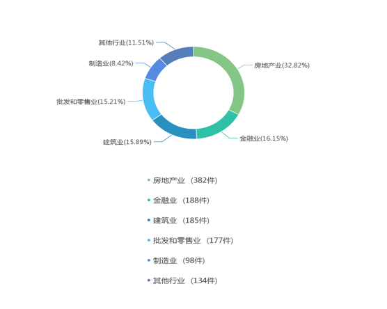 從行業(yè)分類情況來看,執(zhí)行異議之訴的行業(yè)分布與爭議標的物的類型相關(guān),主要集中在房地產(chǎn)業(yè)、金融業(yè)、建筑業(yè)、批發(fā)和零售、制造業(yè)。