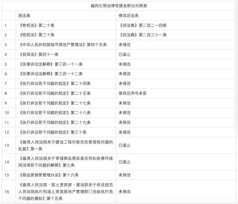 裁判引用法律依據(jù)及新舊對(duì)照表
