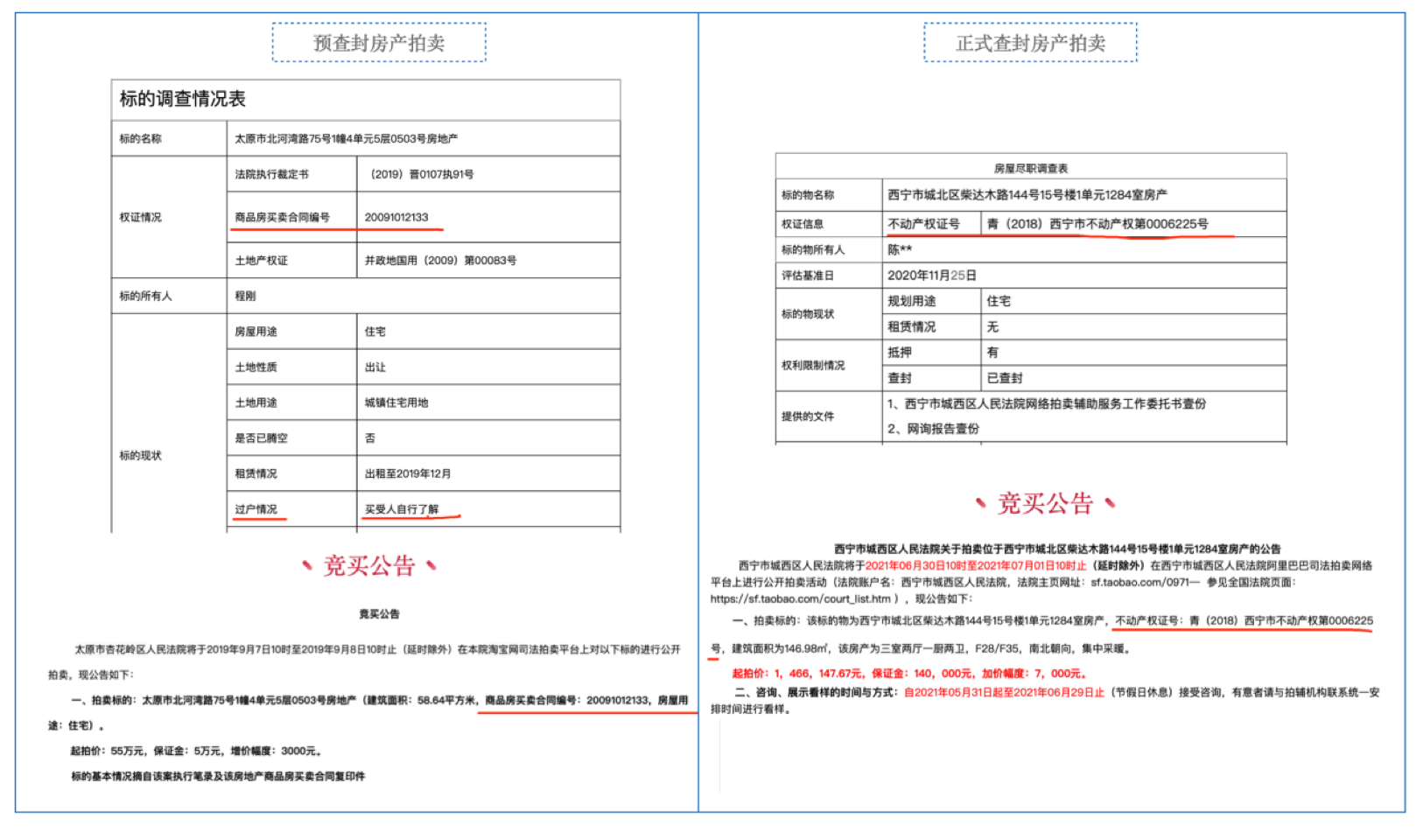第一,雖然預(yù)查封的房產(chǎn)拍賣(mài)不會(huì)像正式查封的房產(chǎn)一樣在拍賣(mài)公告中載明不動(dòng)產(chǎn)權(quán)證號(hào),但是可以在拍賣(mài)公告中載明商品房買(mǎi)賣(mài)合同編號(hào)。
