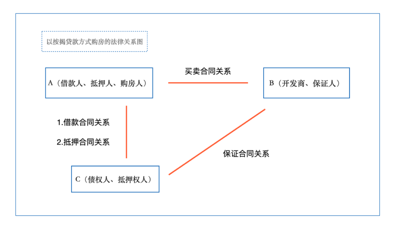 4、此種模式下,購(gòu)房者通常所購(gòu)房產(chǎn)均為期房,故在無(wú)法取得房產(chǎn)證的情況下,只能為C銀行辦理抵押權(quán)預(yù)告登記(即“預(yù)抵押”)。基于此,C銀行通常會(huì)與B開(kāi)發(fā)商簽訂《保證合同》,要求B開(kāi)發(fā)商為A的借款提供階段性連帶責(zé)任保證。同時(shí)《保證合同》中也會(huì)約定在C銀行取得抵押物的《他項(xiàng)權(quán)證》時(shí),B開(kāi)發(fā)商解除保證責(zé)任。