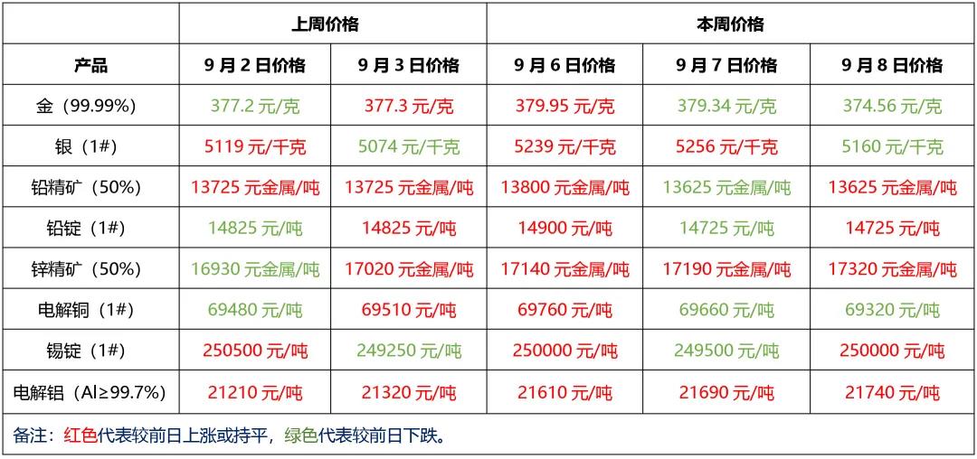 金、銀、鉛、鋅、銅、鋁等主要金屬本周報(bào)價(jià)