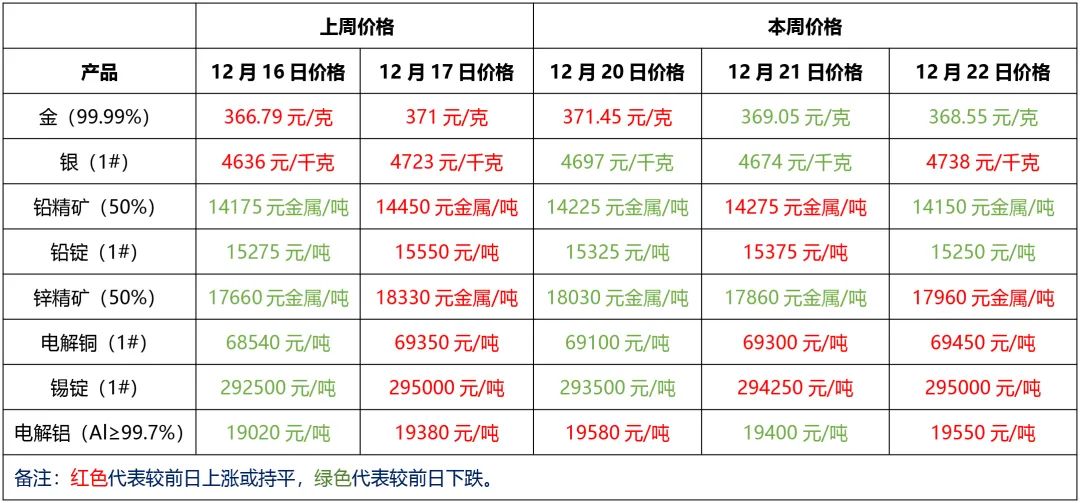 金、銀、鉛、鋅、銅、鋁等主要金屬本周報價