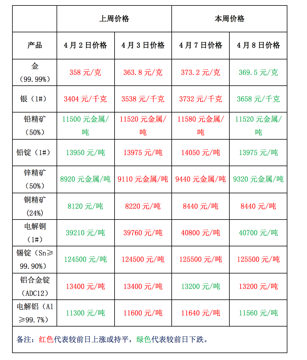 金、銀、鉛、鋅、銅、鋁等主要金屬本周報價