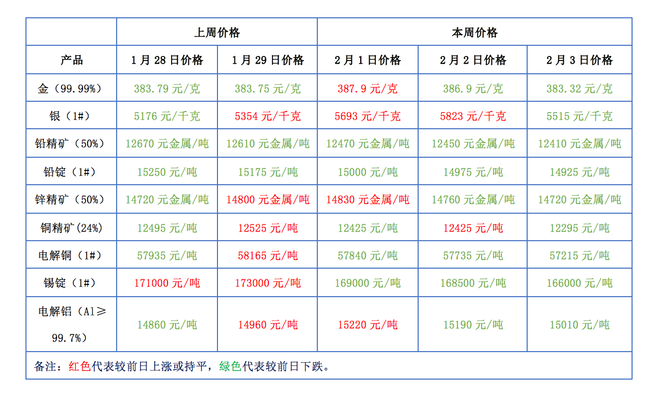 下表為本周金、銀、鉛、鋅、銅、鋁等主要有色金屬礦產(chǎn)品價格變動情況: